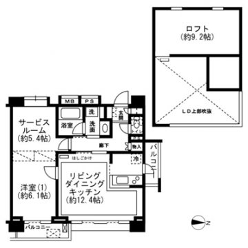 451,000円 / 共益費 25,000円 / 2階 / 2LDK / 83.56㎡ / 南 / 敷金:1.0ヶ月、礼金:2.0ヶ月 / 更新料:新賃料の1ヶ月相当額