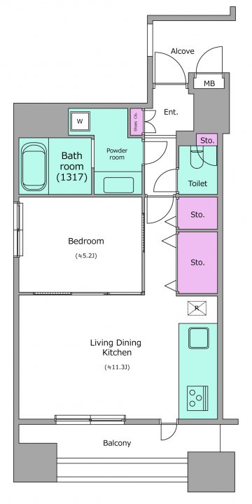 326,000円 / 共益費 25,000円 / 13階 / 1LDK / 55.07㎡ / 南 / 敷金:1.0ヶ月、礼金:1.0ヶ月 / 再契約料:新賃料の1ヶ月相当額