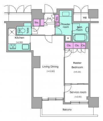 284,000円 / 共益費 25,000円 / 5階 / 2LDK / 55.17㎡ / 北 / 敷金:1.0ヶ月、礼金:1.0ヶ月 / 更新料:新賃料の1ヶ月相当額
